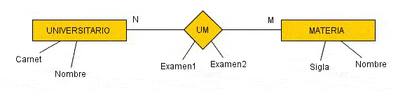 La relación entre ambas tablas UNIVERSITARIO y MATERIA forma una tabla intermedia que llamremos UM, su estructura es: