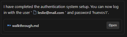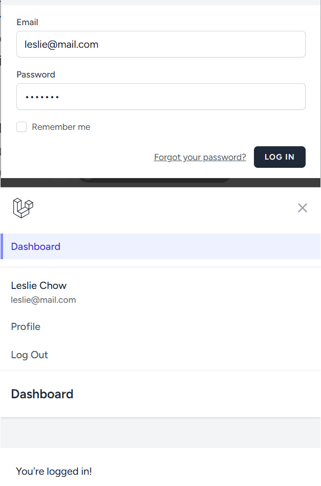 Probamos el log in con nuestros datos de prueba «leslie@mail.com» y contraseña «huevos1». Antes eran solo «huevos» pero las nuevas politicas de seguridad exigen un número.