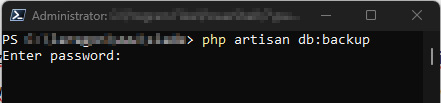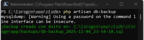 En nuestra consola escribimos el comando >php artisan db:backup y presionamos ENTER.