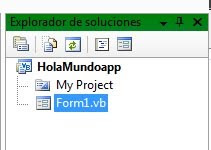 VB.NET creara los archivos necesarios para empezar el proyecto. Estos pueden verse en el «Explorador de soluciones» hubicado a la derecha del programa