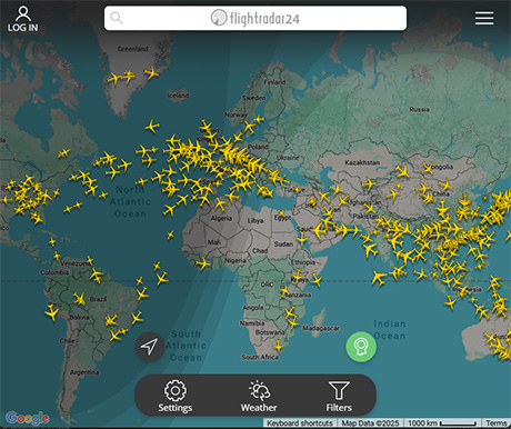 Flightradar24 es el sitio más popular para el rastreo de aviones comerciales en tiempo real.